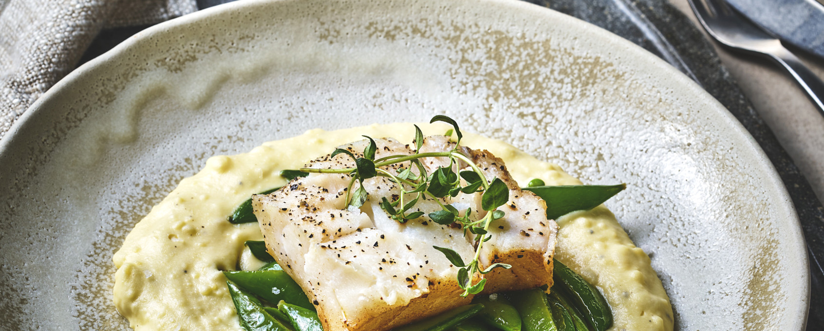 - Del torskeloin i stykker, og krydre med salt og pepper.